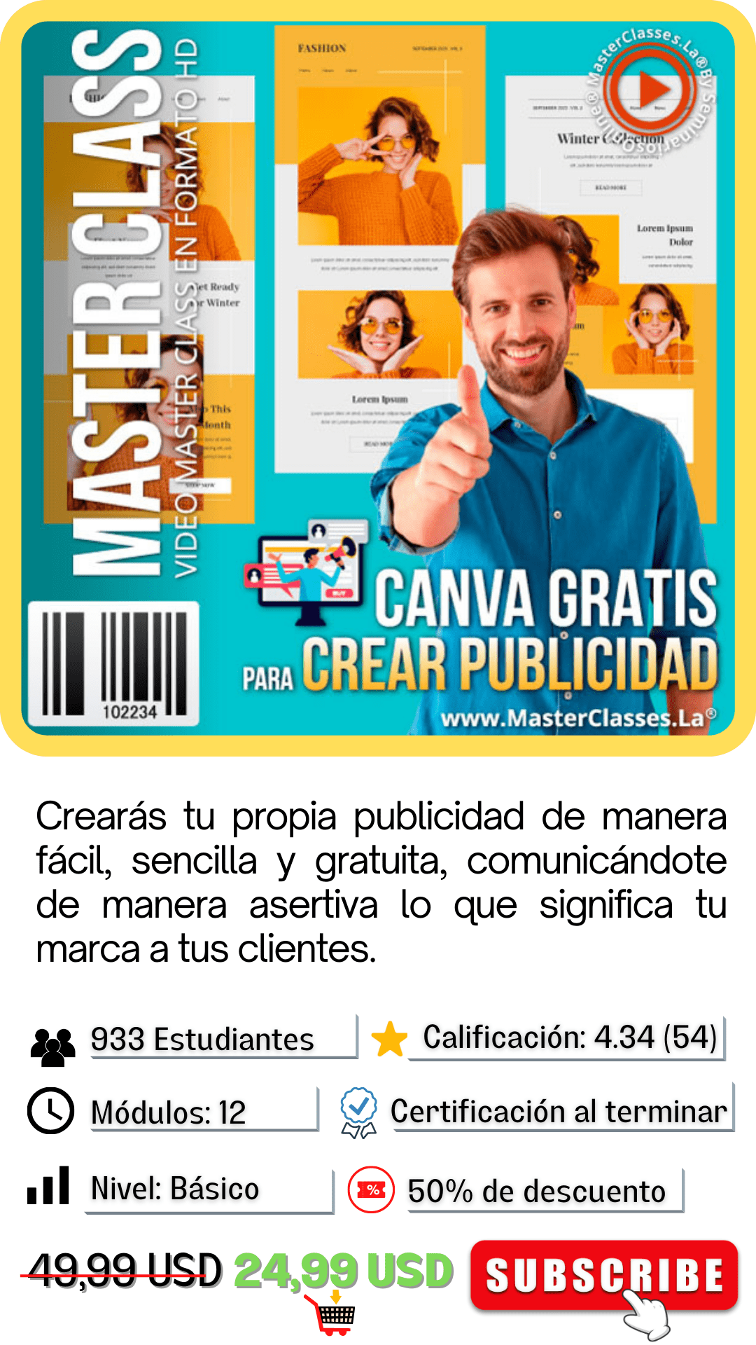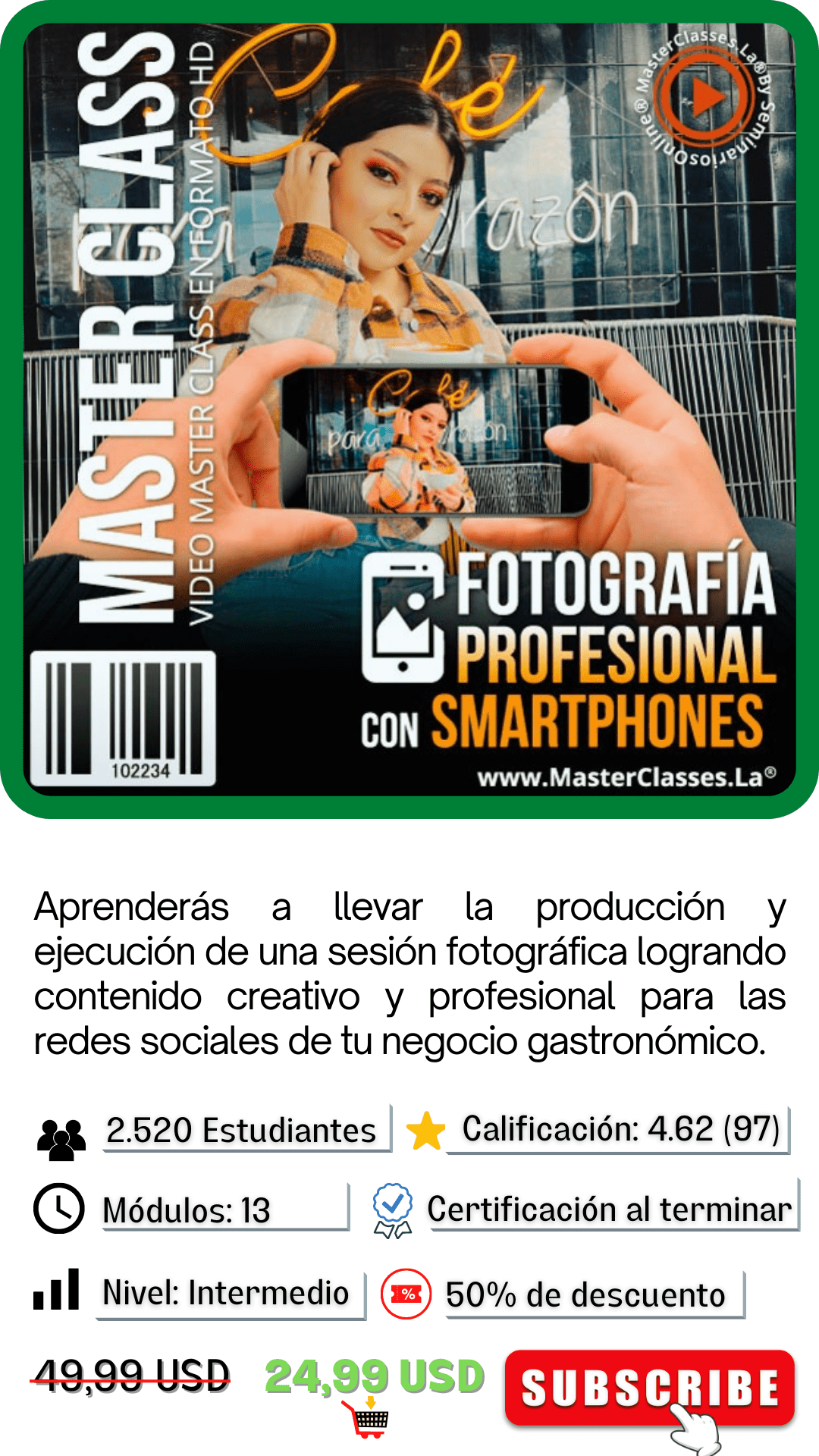 Recuerda que el curso estará disponible por más tiempo, sin embargo perderías el 50% de descuento que ofrecemos hoy.