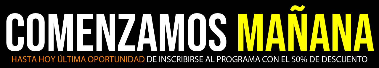 Inscripciones abiertas con el 50% de descuento hasta hoy! Últimos cupos! Un solo pago para toda la vida, recibirás las actualizaciones que tenga el programa en el tiempo, así como sesiones de asesoría directamente con el Director del Programa.